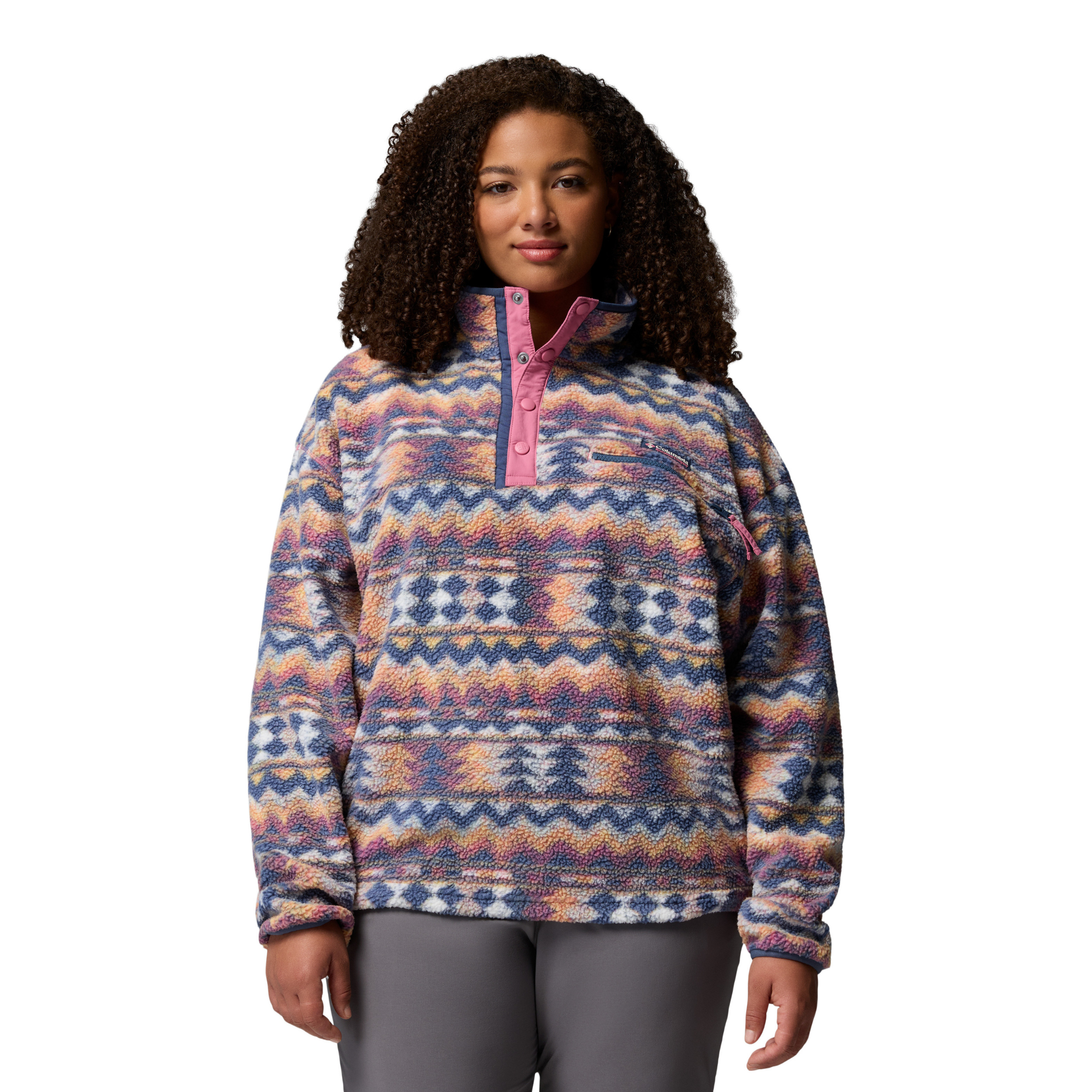 Columbia Women's Helvetia II Printed Cropped Half Snap Fleece Top Sea Salt Retrotree 127 2098501