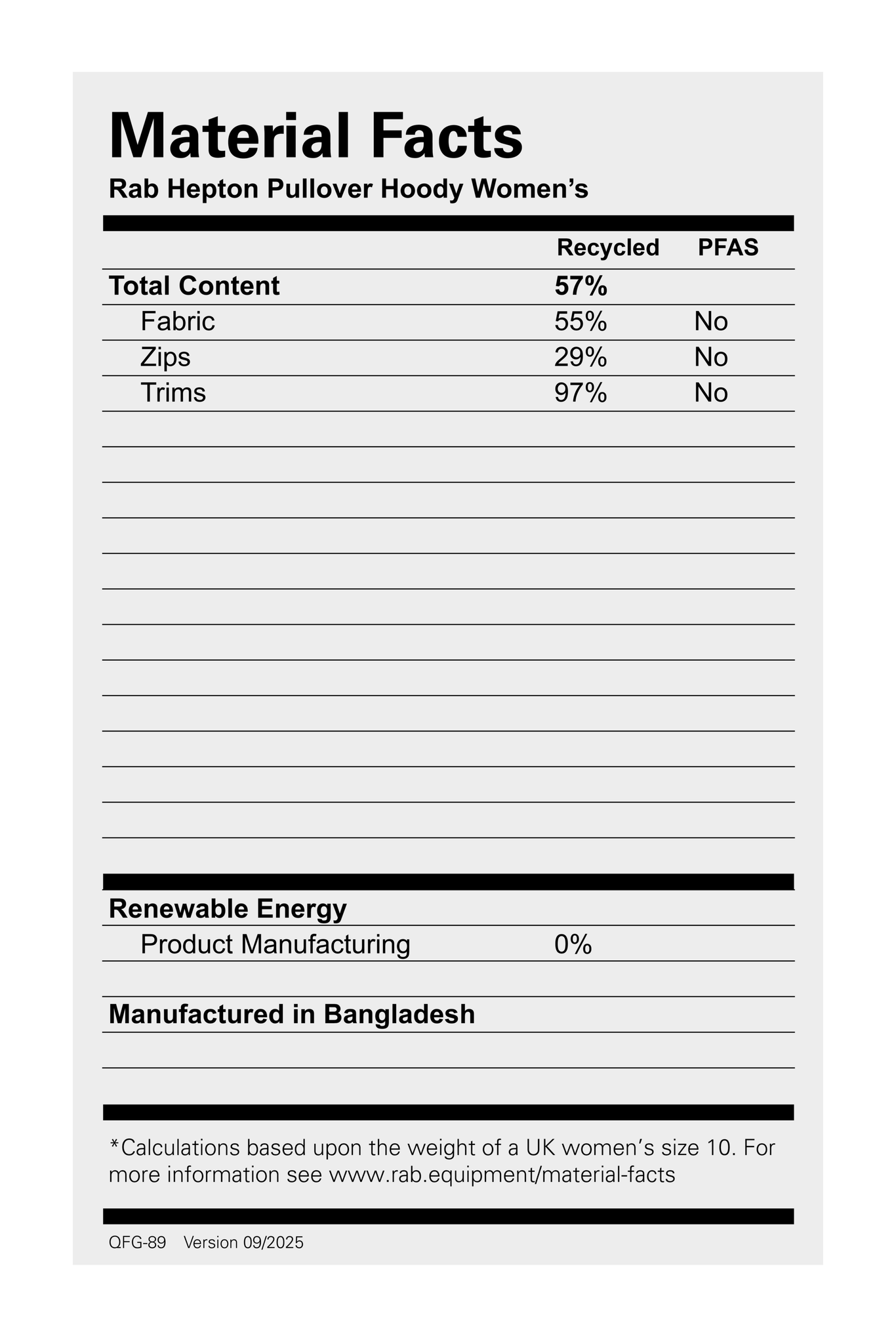 • Fluorocarbon (PFAS) free fabric