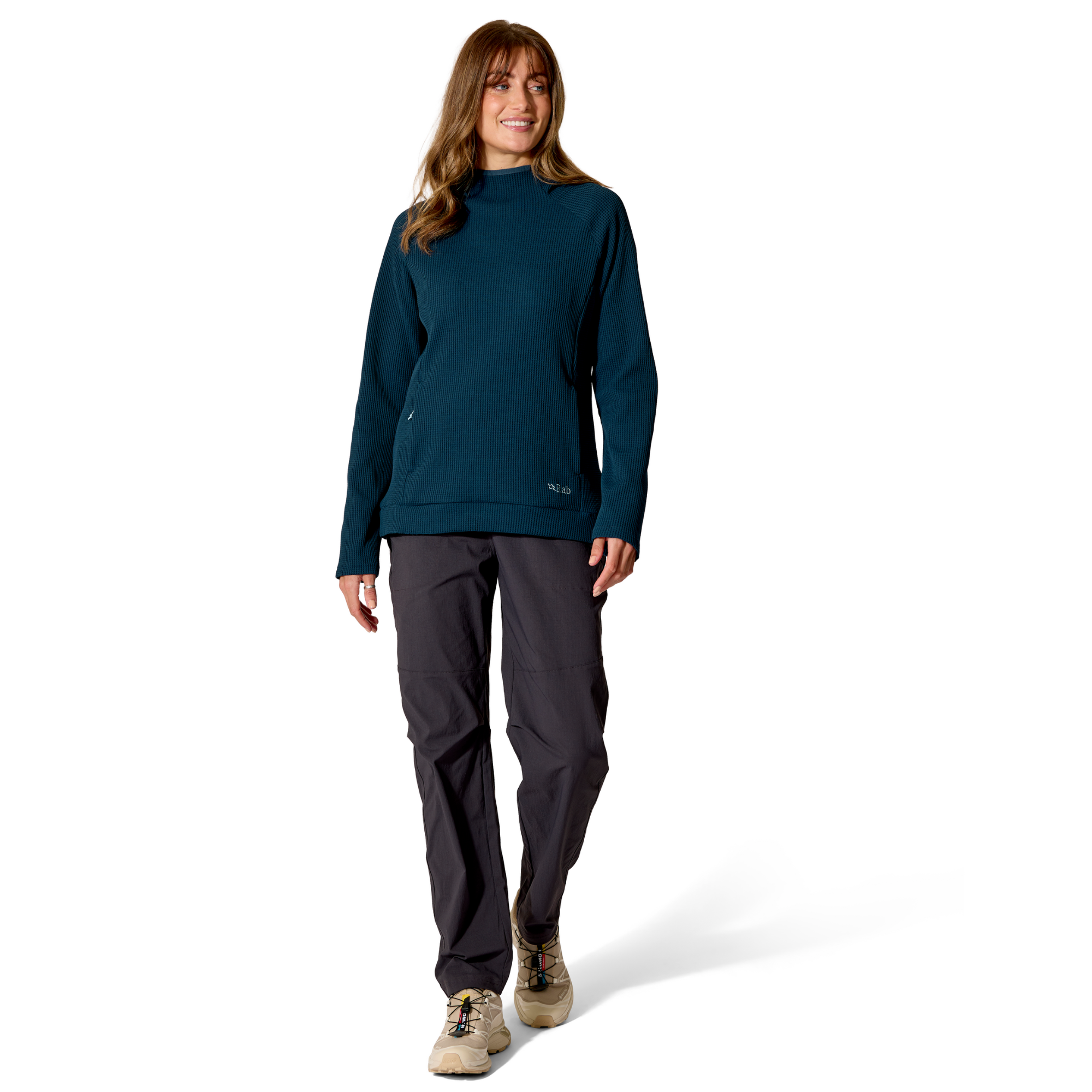 The Hepton Pullover Hoody wicks sweat quick and dries fast, to keep you comfortable on fast hikes, tough climbs, and steep scrambles. The unique, 3D waffle structure of the fabric gives it a much greater surface area than smooth fabrics, which allows it to dissipate moisture faster. This ensures it stays dry and never becomes cold or clammy, even when you’re pushing the pace or challenging yourself on tricky terrain. Stretchy and malleable, it enables a full range of motion and will quickly become the midlayer you live in, from the first bouldering session of summer to the moment you layer up for winter.