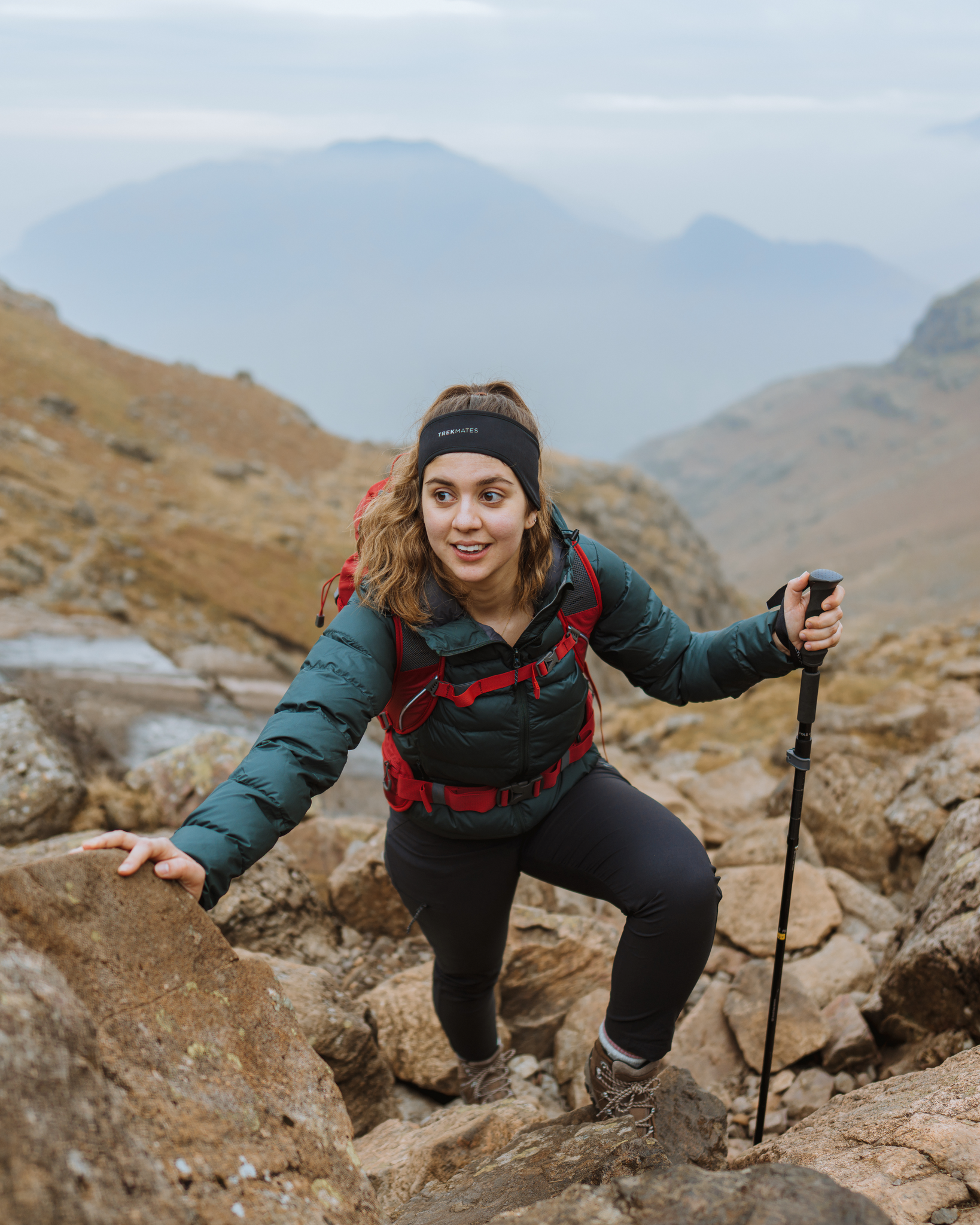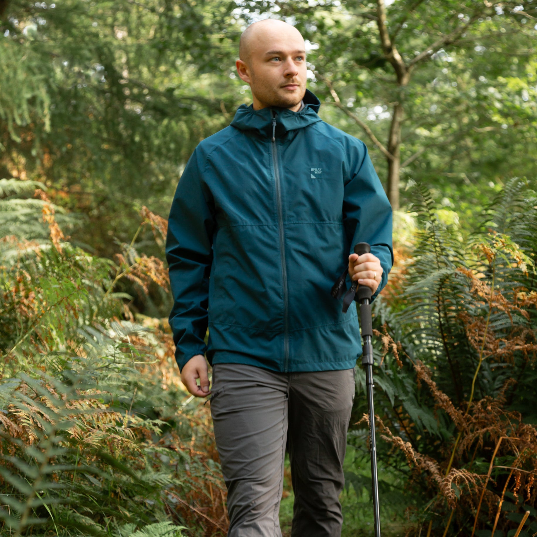 A folding, 5 section, aluminium hillwalking pole.
