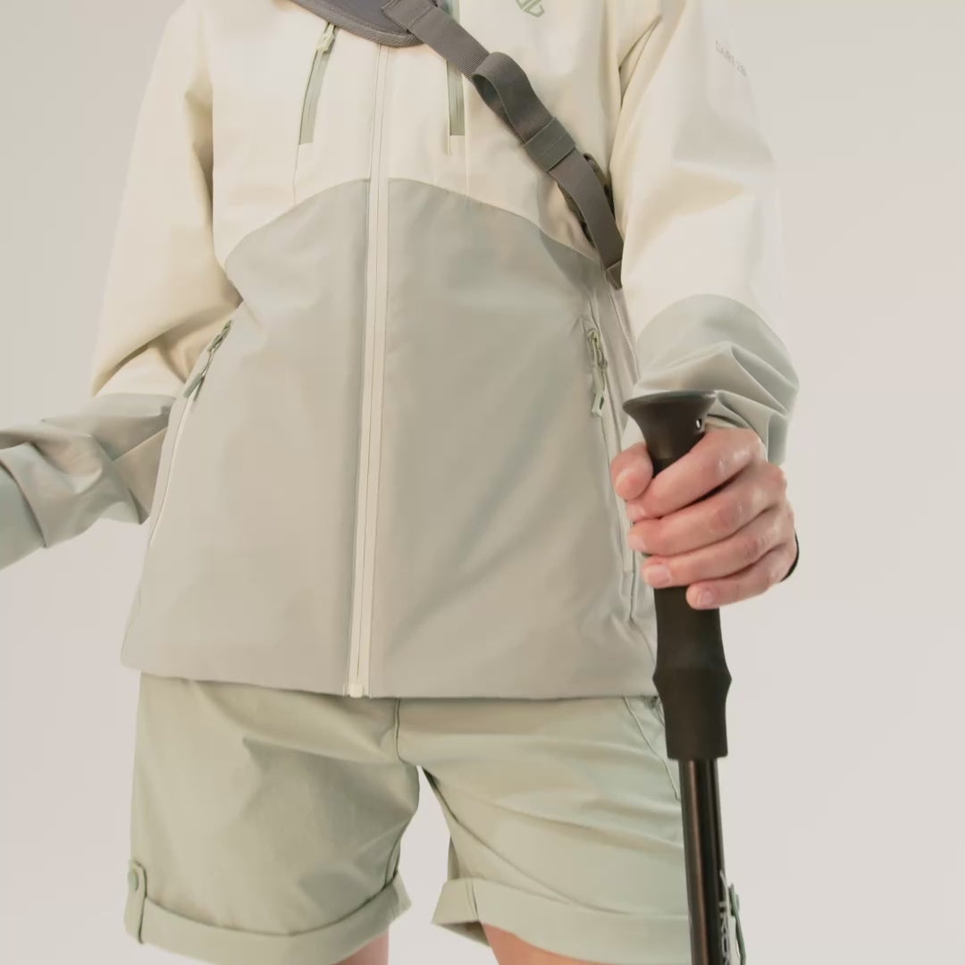 Dare 2B Women's Diverging II Hooded Waterproof Jacket Almond Milk Glacier Green ZMM DWW595