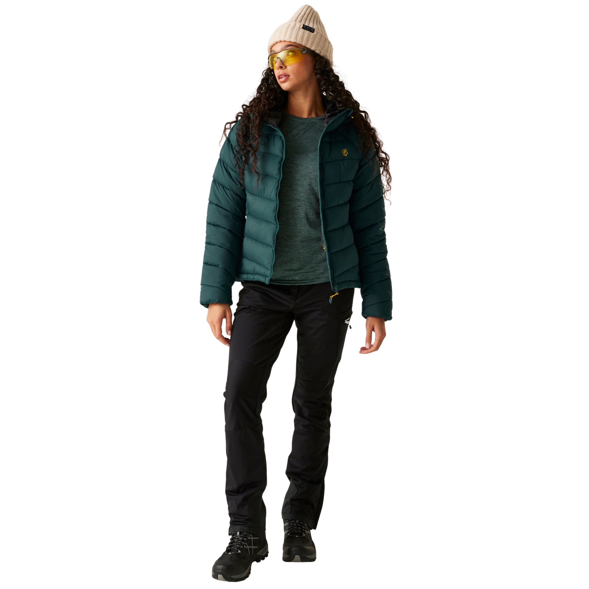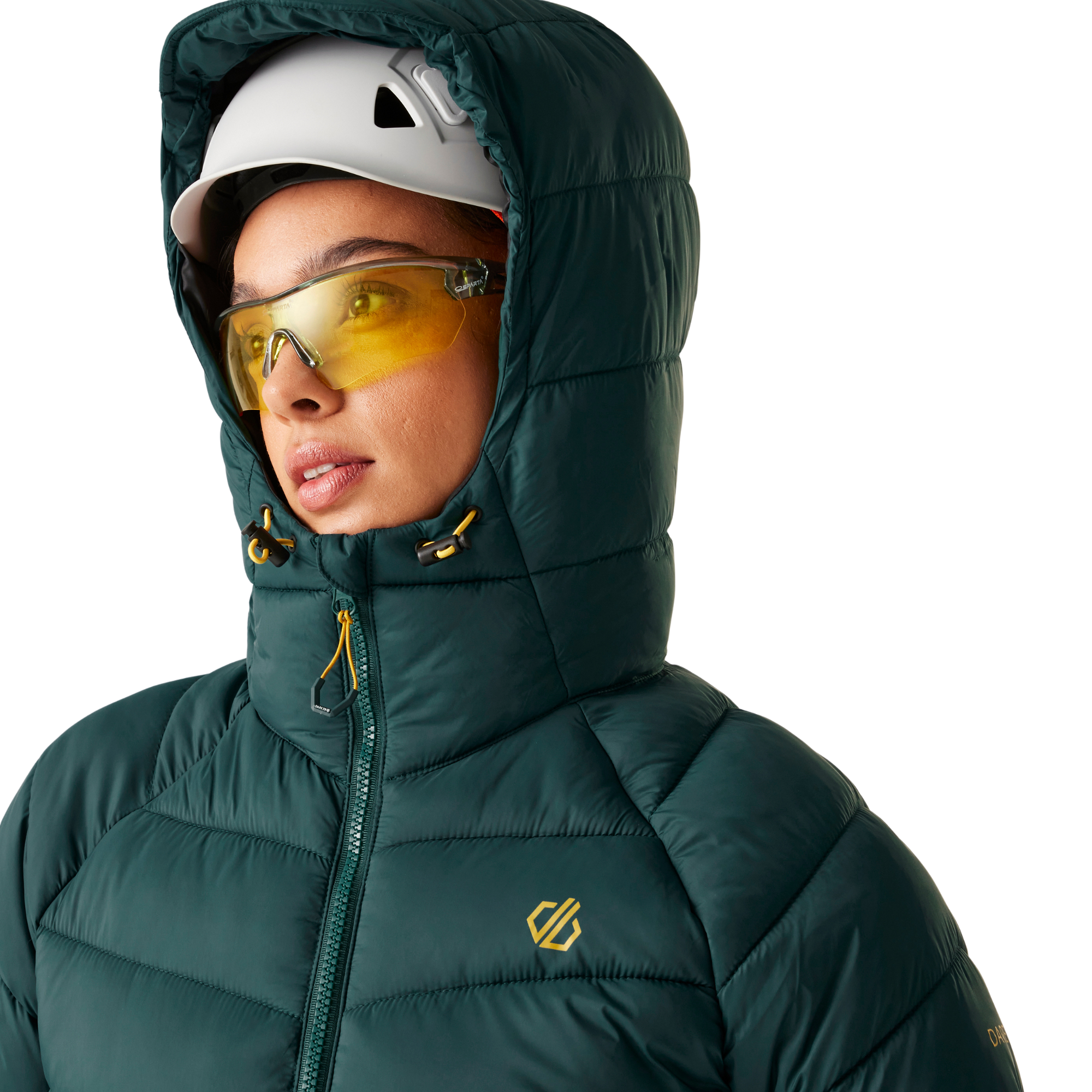 The Women's Torrek Baffle Jacket. Crafted from 100% polyamide, Dare 2B's Women's mountain jacket offers exceptional durability and windproof performance to protect you from adverse weather. The baffled quilt design is filled with their ILoft Eco Air Fill, a high-warmth padding with a remarkable warmth-to-weight ratio. It makes the hiking jacket compressible and perfectly lightweight. Whether you're summiting peaks or exploring remote trails, you'll stay protected with the technical hood with a wired peak. Equipped with an inner zipped pocket and two lower zip pockets, you can securely store your essentials while on the go. The women's hiking jacket is finished with an adjustable shock cord hem for a customisable, snug fit.