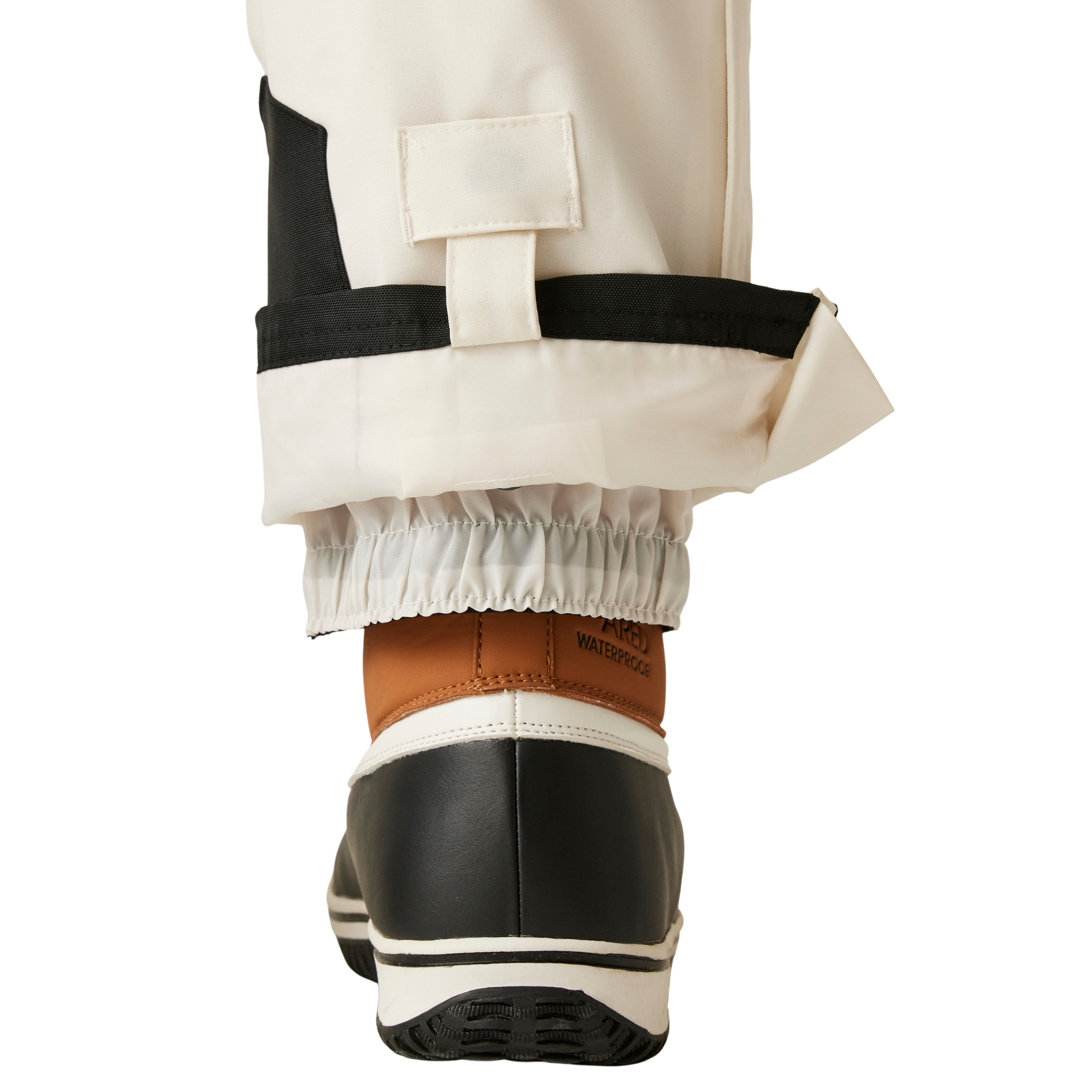 • Tab up hem for when boots are off